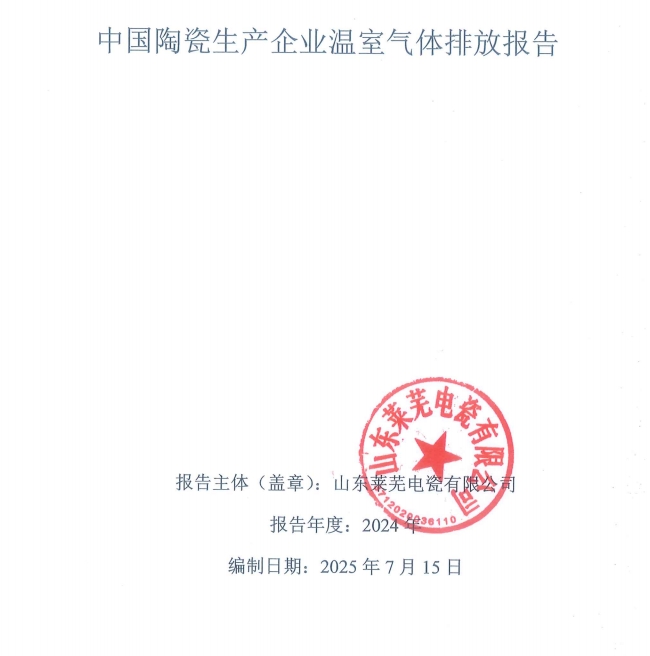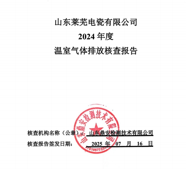 山東萊蕪電瓷有限公司2024年度溫室氣體排放核查報告 山東萊蕪電瓷有限公司2024年度溫室氣體排放核查報告