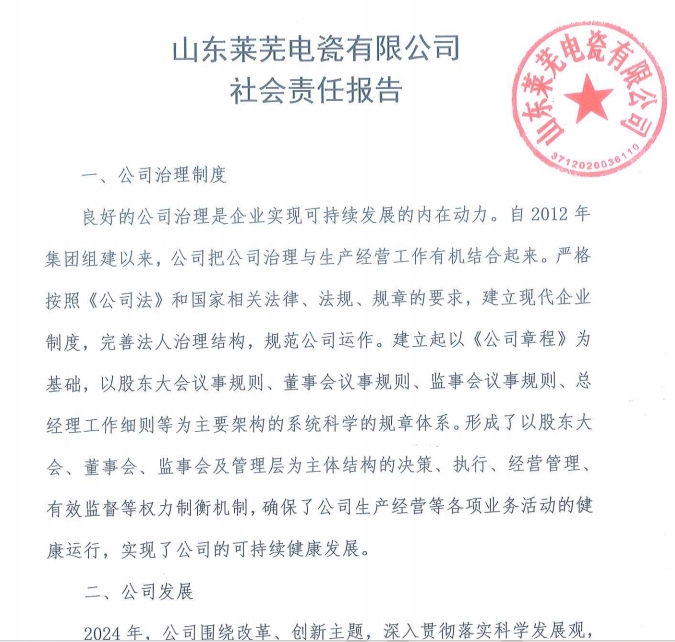 山東萊蕪電瓷有限公司社會(huì )責任